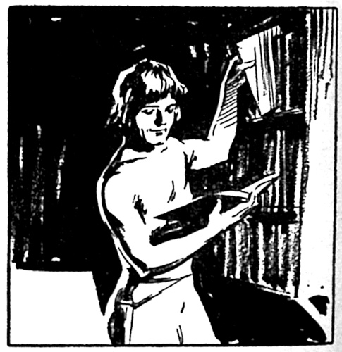 Tarzan requested that his own finger-prints be taken. This done, d'Arnot drew forth a little book, turning to a page where were several tiny smudges. Surprised, Tarzan watched, recalling how he had given the diary to his friend. Now he realized the meaning of their visit to the police bureau!