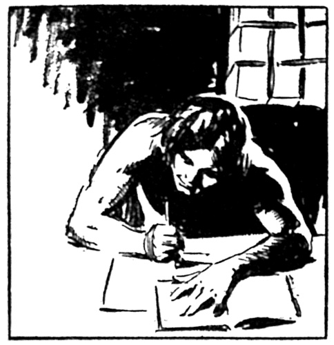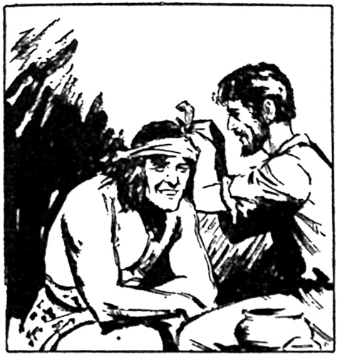 He called faintly. The man crawled in. D'Arnot spoke to him in French, then English, but he shook his handsome head. After examining d'Arnot's wounds he disappeared, coming back with fruit, water, pieces of smooth bark, and a pencil. Squatting beside d'Arnot, he wrote, handing the message to the Frenchman.