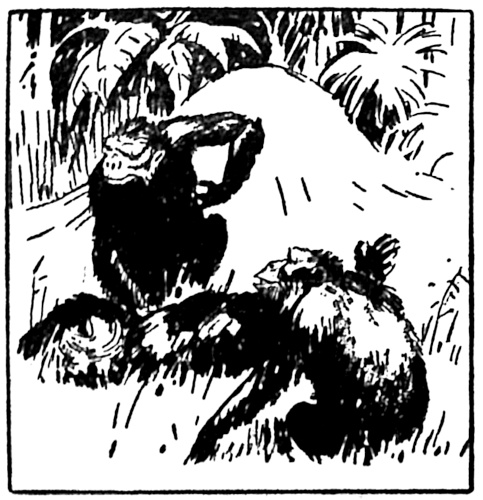 Then he spied Kala, returning from a search for food, with her young babe. Ignorant of the state of the King's temper, the shrill warning of her fellows caused her to scamper madly for safety. But Kerchak was close upon her—so close that he had almost grasped her ankle.