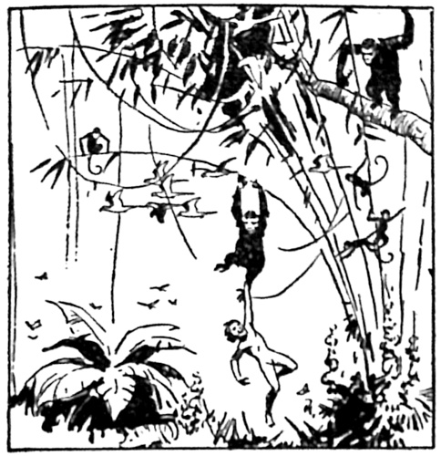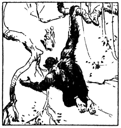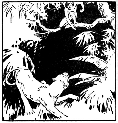 She made a furious leap far into space—from one tree to another—made it successfully. But as she grasped the limb of the further tree, the sudden jar loosed the hold of the tiny babe. She saw the little thing hurled—turning, twisting—to the ground thirty feet below.