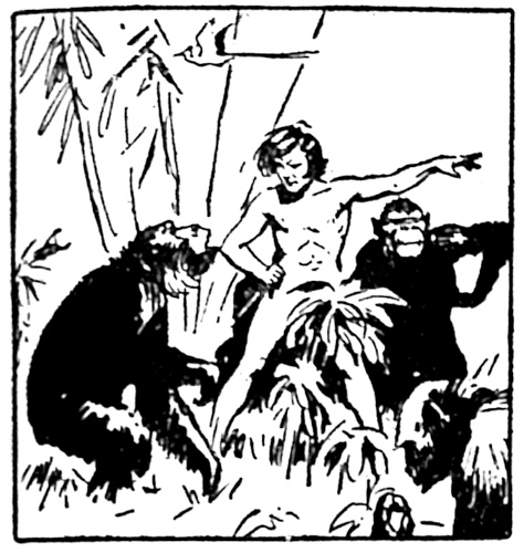 Then he answered Jane. "It means I must return to Africa." He heard her half-choked sob.... "We owe you our lives," said Clayton humbly.... "How'd you get into that bally jungle, anyway?"... "I was born there," said Tarzan quietly.... "My mother was an ape.... I never knew who my father was!"