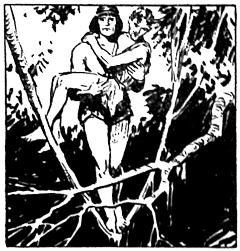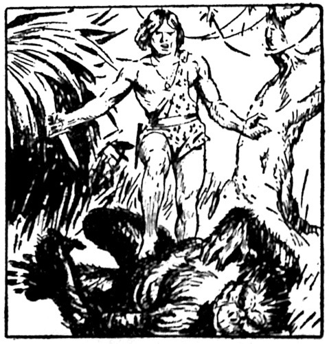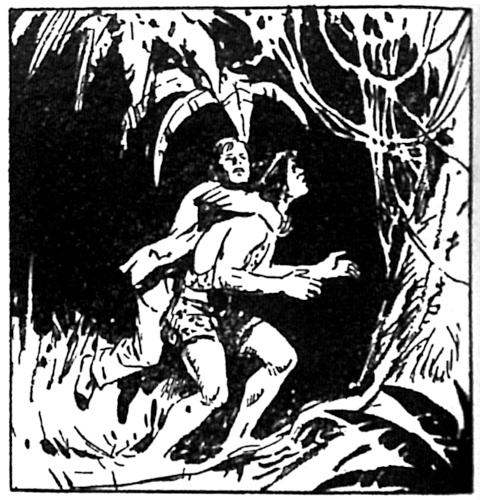 Now from the trees came a crash and the black came sprawling to earth again, to lie quietly where he had fallen. Immediately after came a white body, alighting erect. D'Arnot saw a clean-limbed young giant emerge and come quickly to him.... Some new creature of torture, doubtless.
