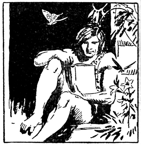 Tarzan turned toward the window. But he saw nothing without. Instead in his mind's eye he beheld a patch of greensward in the African jungle matted with tropical plants and flowers. Above, the waving foliage of mighty trees and over all the blue of an equatorial sky! It was HOME.