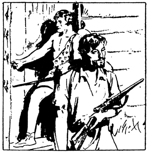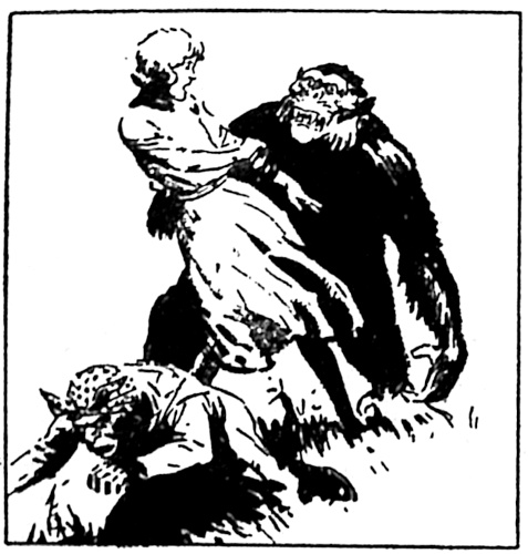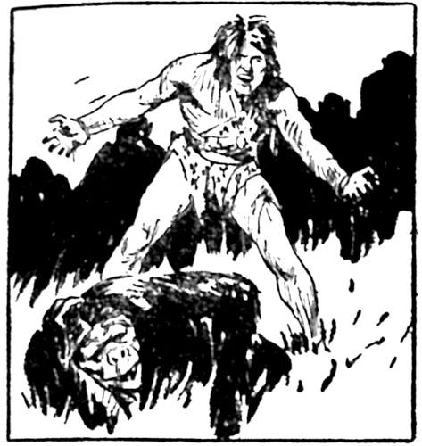 And behind them, over the edge of a low ridge, other eyes WATCHED THEM—close-set wicked eyes, gleaming beneath shaggy brows!