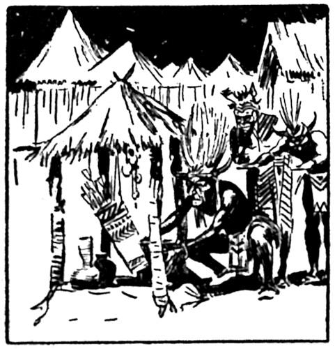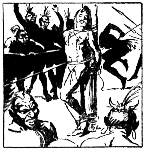 D'Arnot was bound securely to a great post. The women fetched pots and water; others built a row of fires. He watched them, half-fainting with pain, but not once did he cry out. The dance of death commenced to circle around the doomed officer, moving nearer and nearer.