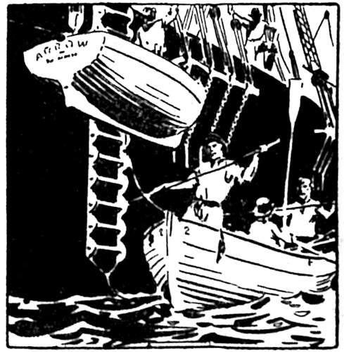 The handsome "Monsieur Tarzan" was a great favorite during the voyage. One morning as he watched the dancing spray, he heard a cry "Man overboard," and saw a youth slip to the dark waters below. Quick as a flash, Tarzan dived after, clasping him almost before the waters closed over them.