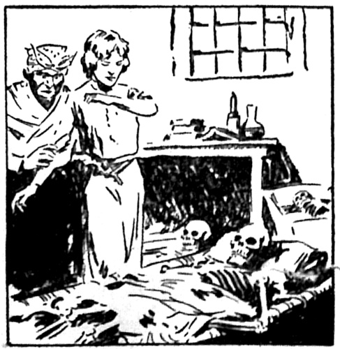 Tarzan, saying good night, asked the Professor to recall the burial from the African cabin. "Were all three human skeletons?" Jane's father eyed him narrowly. "No," he replied. "The smallest one—that found in the crib—was the skeleton of an anthropoid ape!" "Thank you," said Tarzan quietly. Dawn was breaking.