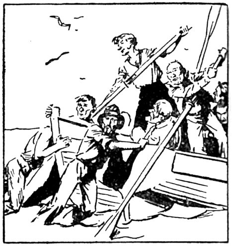 Enraged, the blood-thirsty ruffians charged the officers representing the hated authority of the ship. Most of them were armed with boathooks, axes, and crowbars. The officers retreated before the infuriated rush of their men. An axe cleft the captain from forehead to chin.
