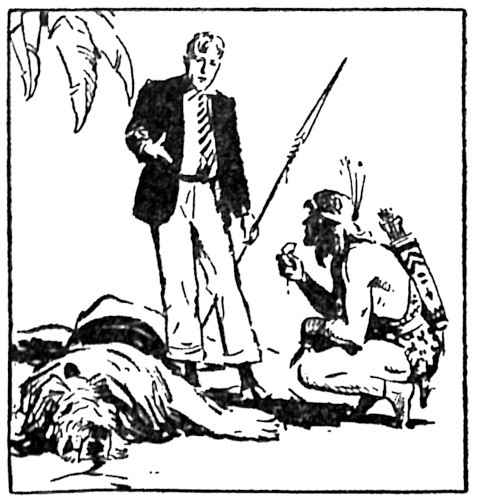 When d'Arnot regained consciousness, he found himself lying in a little shelter of boughs. Soon he recalled the whole hideous scene at the stake; the strange white figure carrying him away. What fate lay in store for him now?... Outside the hut he saw the squatting figure of a man.