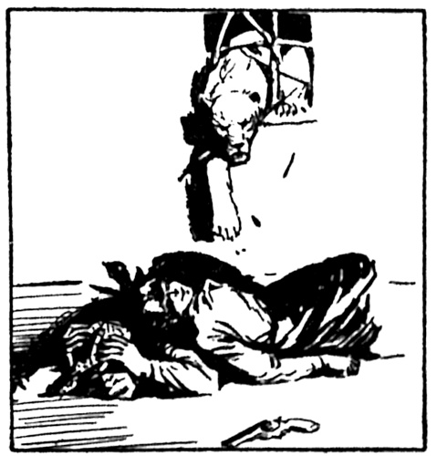 With the gun's report, d'Arnot saw a man pitch headlong into the cabin. In an instant he realized he had shot his friend and protector, Tarzan of the Apes. With a cry of anguish, d'Arnot sprang to the ape-man's side, lifted his head, calling Tarzan's name aloud. There was no response.