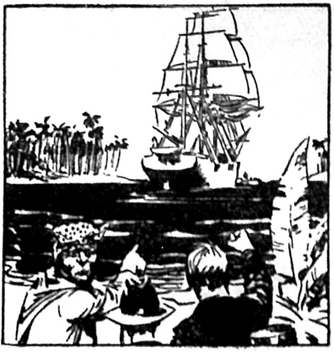 Alarmed, the sailors came running to the scene. A volley of arrows fell among them. They answered with their rifles, shooting toward their concealed enemies. After a terrific hand-to-hand fight, leaving many dead on both sides, the natives fled, taking Lieutenant d'Arnot with them to their village.