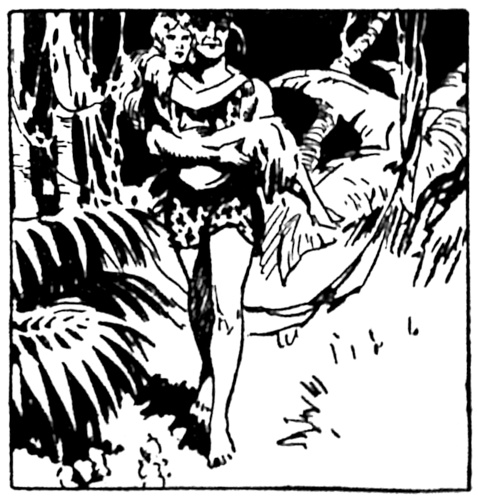 The little expedition searching for Jane pushed their way slowly through the tangled jungle. Lieutenant d'Arnot was in the lead, a hundred yards in advance. Suddenly six black warriors arose about him. He gave a warning shout, but before he could draw his revolver he was dragged into the jungle.