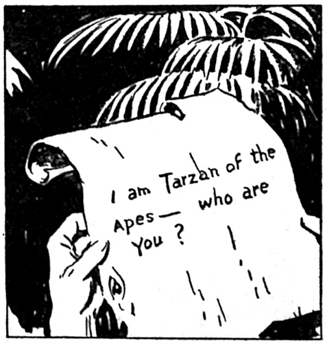 D'Arnot read with astonishment: I am Tarzan of the Apes. Who are you? So d'Arnot wrote in English, about himself. Thus conversing, he learned the story of the fight and found Jane was safe. Then for three days he was in a delirium. Tarzan feared to leave him long.