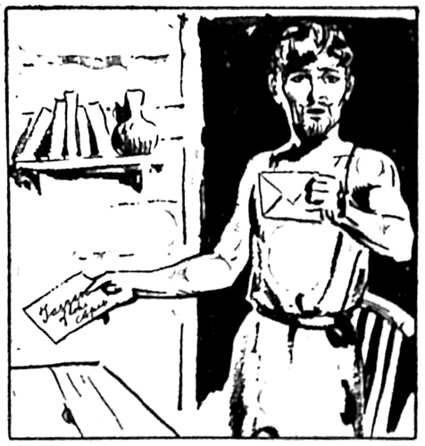 As Tarzan stood on the threshold brooding, d'Arnot entered the cabin. He found many comforts left behind. There were two notes addressed to Tarzan of the Apes. One, in a woman's hand, was sealed. Turning toward the door, he found Tarzan gone. He called aloud, but there was no response.