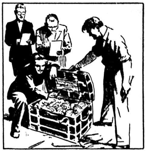 And now Tarzan was able at last to see the treasure. When the great oak, iron-bound chest was forced open, it was found to contain gold coin—"doubloons" and "pieces of eight" from pirates' raids along the Spanish Main. Tarzan desired to take it intact to America with him.