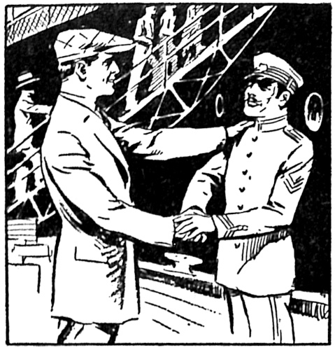Tarzan wished to work his way across the Atlantic. D'Arnot would not consent. He had deposited money to Tarzan's credit and had given him a fine French motor car. Making him promise to return to Paris, d'Arnot reluctantly bid him adieu and wished him "Bon voyage" as Tarzan boarded the great liner.