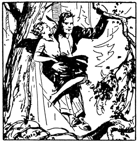 Motioning her to follow him, Tarzan walked toward the trees. Taking her in one strong arm, he swung to the branches above. The ardor of his first fierce passion had cooled. He knew why the ape had not killed Jane. But he must not be guided by the laws of beasts.