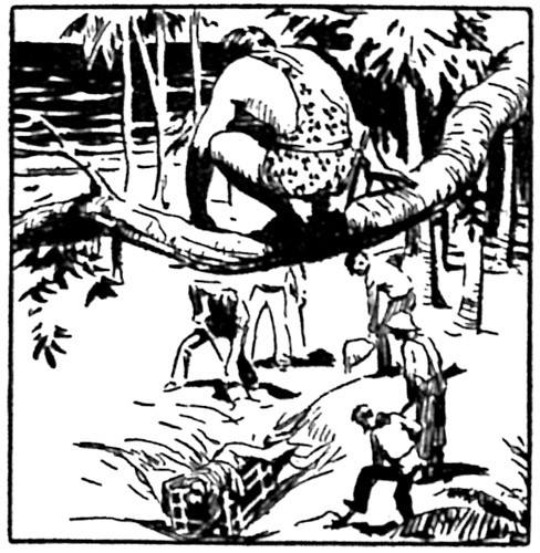 Four trees were selected that formed a rectangle, and, cutting long branches from other trees, he constructed a framework around them, fastening the ends of the branches securely to the trees by means of rope, a quantity of which Black Michael fortunately had furnished him from the hold of the Fuwalda.