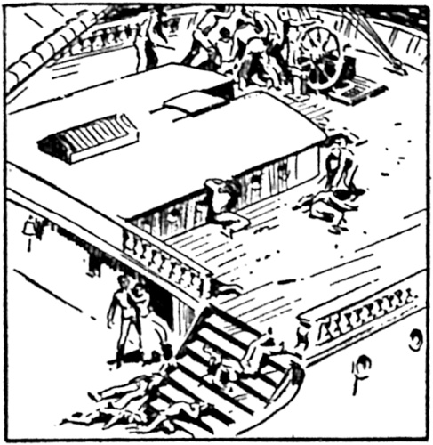 Both sides were cursing and swearing in a frightful manner, which, together with the reports of the firearms and the screams and groans of the wounded, turned the deck of the Fuwalda to the likeness of a madhouse. Short and grisly had been the work of the mutineers.