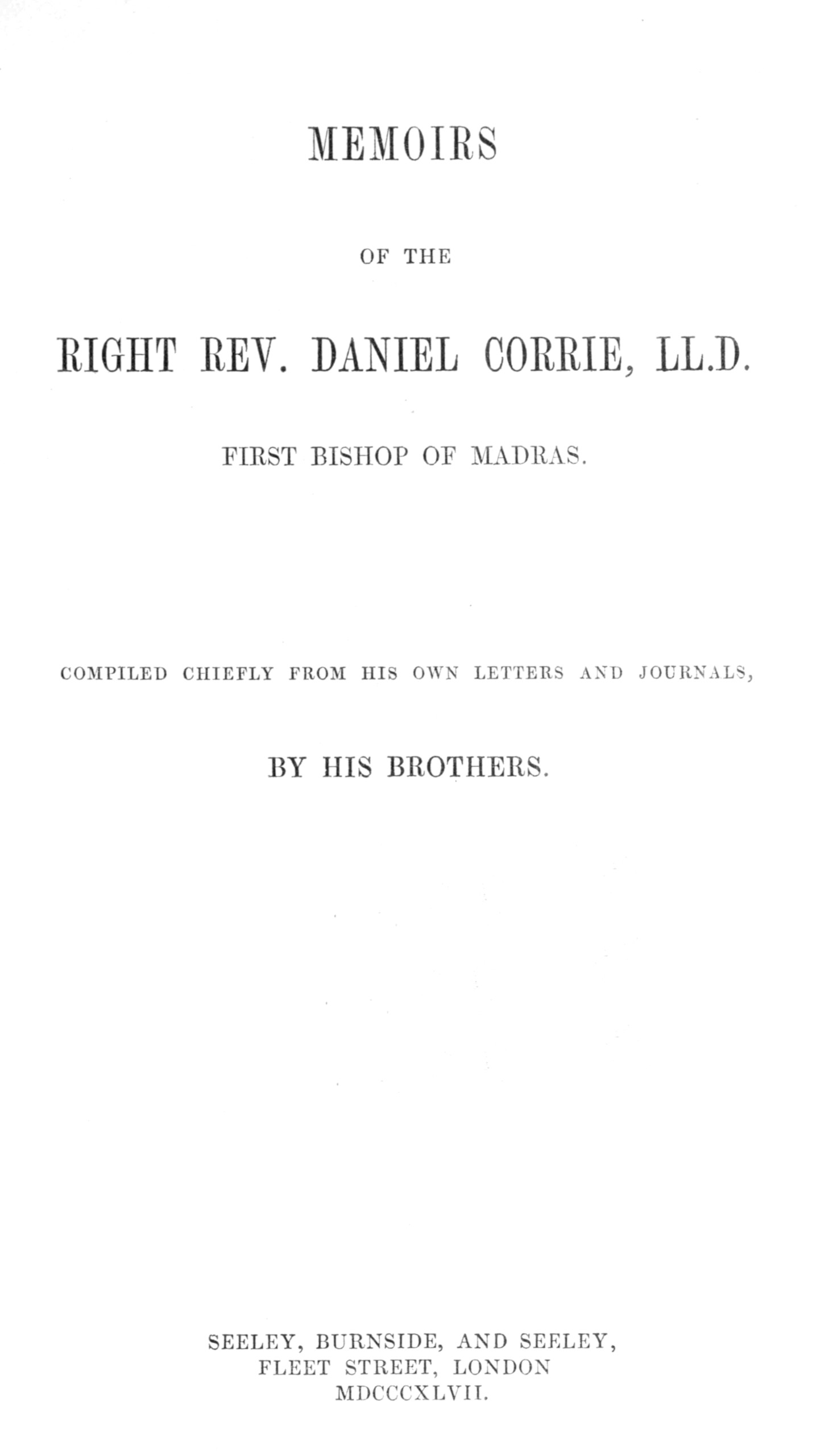 Title: Memoirs of the Right Rev. Daniel Corrie, LL.D., first Bishop of Madras