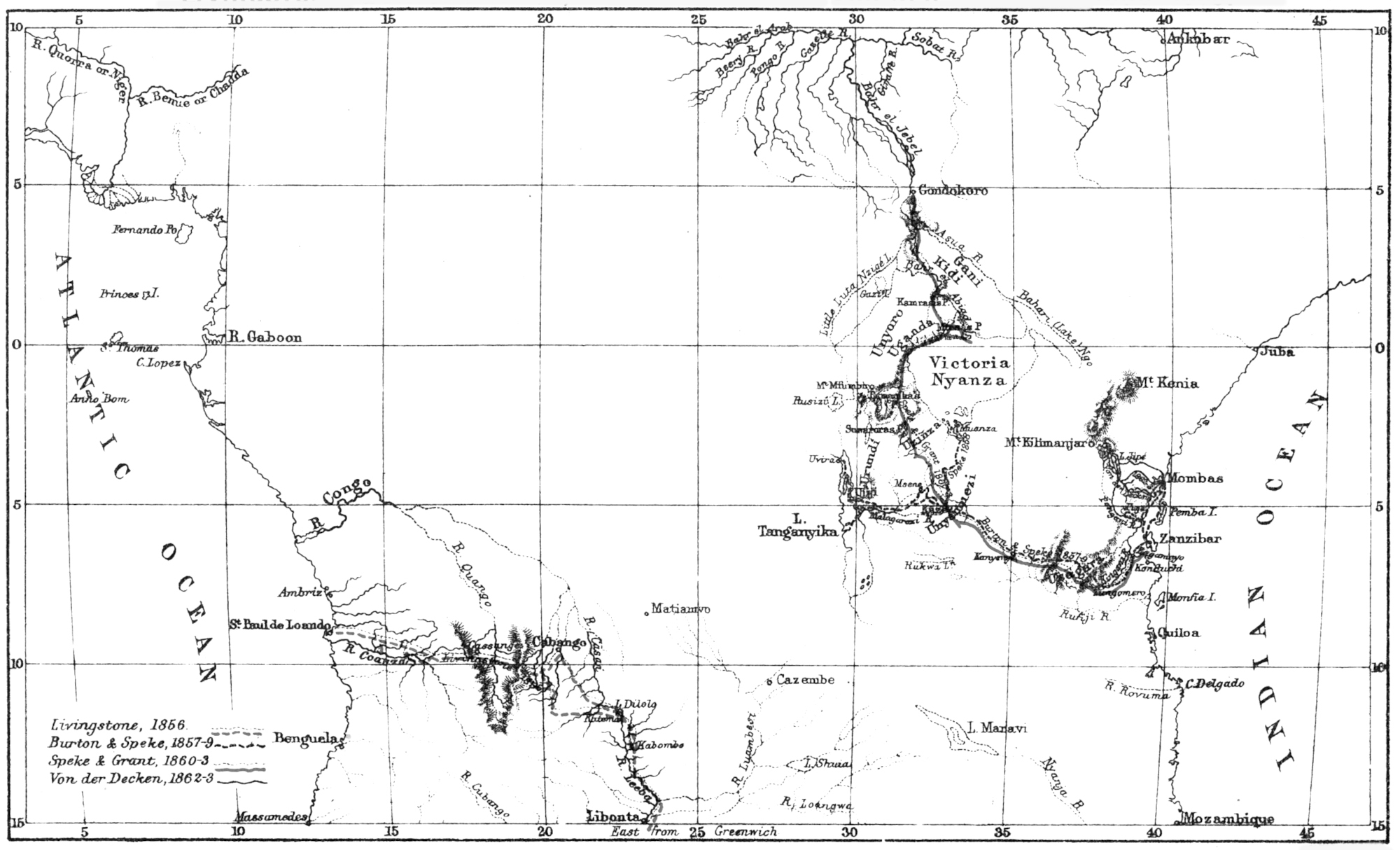 | 2. | Lieut. Cameron, R.N. | ” | Bagamoyo to Benguella | 1873-1875. |