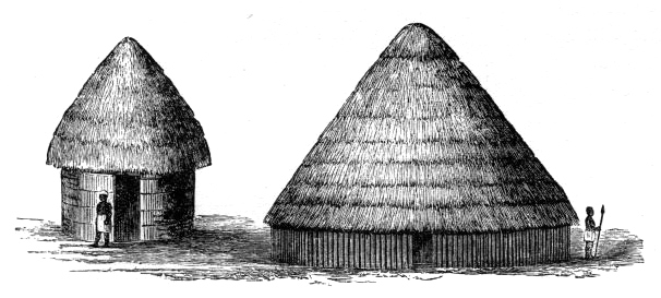 We journeyed to the important village of Usagusi on the 12th, in a south-south-west direction. Like Serombo, Myonga’s, Urangwa, Ubagwé, and Msené, it is strongly stockaded, and the chief, conscious that the safety of his principal village depends upon the care he bestows upon its defences, exacts heavy fines upon those of his people who manifest any reluctance to repair the stockade; and this vigilant prudence has hitherto baffled the wolf-like marauders of Ugomba.
