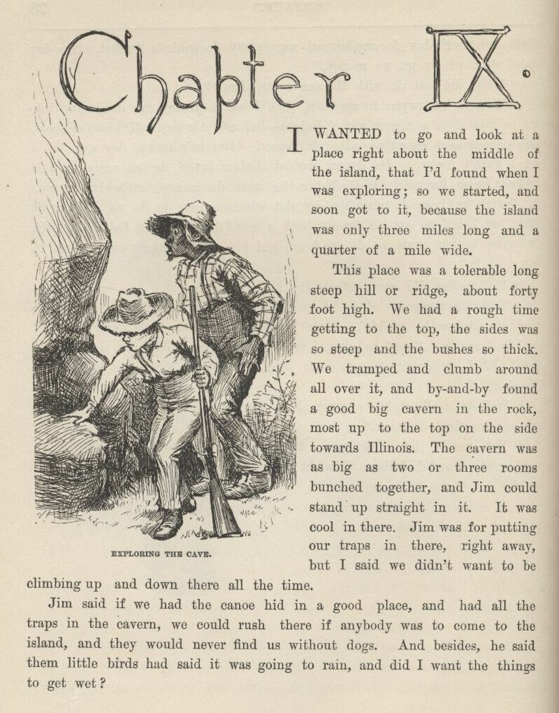 Then they come out and locked him up. I hoped they was going to say he could have one or two of the chains took off, because they was rotten heavy, or could have meat and greens with his bread and water; but they didn’t think of it, and I reckoned it warn’t best for me to mix in, but I judged I’d get the doctor’s yarn to Aunt Sally somehow or other as soon as I’d got through the breakers that was laying just ahead of me—explanations, I mean, of how I forgot to mention about Sid being shot when I was telling how him and me put in that dratted night paddling around hunting the runaway nigger.