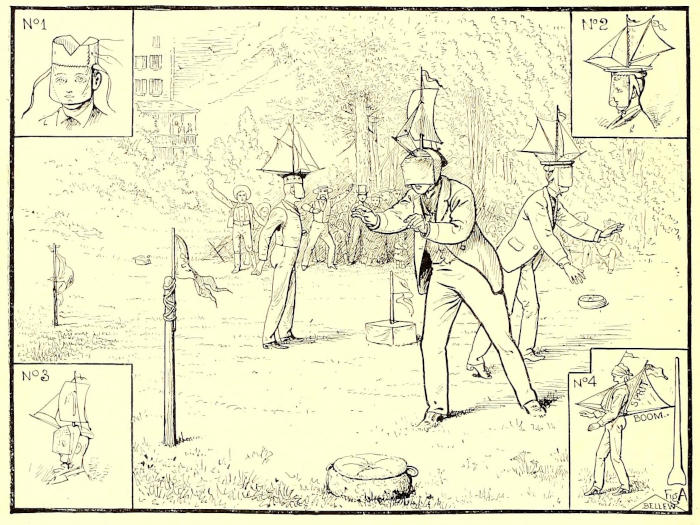 Dear St. Nicholas: I suppose you know that many girls have a poor opinion of boys. Well, my sister and her girl-friends were going to have a fair in my mother’s parlors. I wanted to be in it, but they laughed, and asked me “if I could dress a doll, or make a needle-book?” While they were joking, Mamma whispered something in my ear, and we had a secret together, and we kept it till the night of the fair, and then we astonished my sister in this way. There is a long hall opening out of our back parlor. Mamma had it brightly lighted, that night, and about the middle of the evening Papa opened the door which led into the hall, and hung a large card over the door, on which was written: “Target-Shooting.”