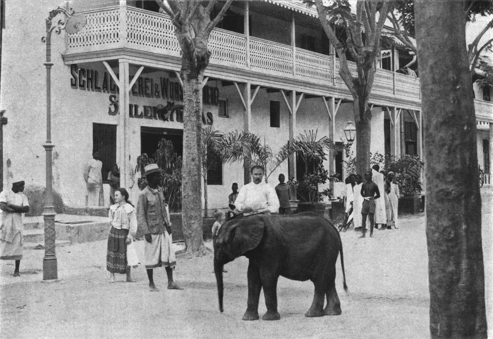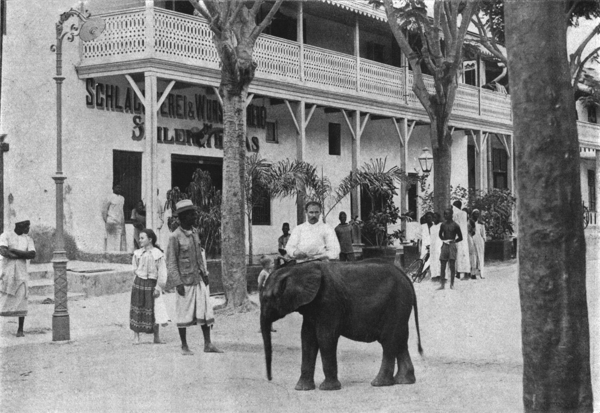 Hier in Daressalam begünstigte mich das Glück. Unser Stellinger Tierpark besaß zwar einige indische Elefanten, hatte aber noch keinen afrikanischen aufzuweisen. Ein solches Tier konnte ich hier auf sonderbare Weise erwerben. „Jumbo“, ein etwa anderthalbjähriger Elefant, war mit Beschlag belegt und stand in Obhut des Polizeiwachtmeisters Fritz. Um den Hals trug der Dickhäuter nolens volens ein schwarz-weiß-rotes Band mit dem bekannten Siegel, welches der Gerichtsvollzieher an gepfändete Sachen anzulegen pflegt.