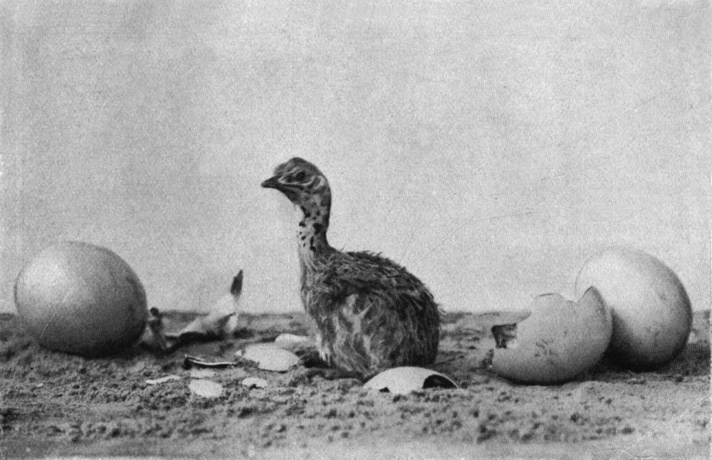 a) Man sucht das Gelege auf, das sich in der Steppe einfach auf dem Boden im kurzen Grase befindet. Hierbei flüchten die Hennen und man umgibt die Nester mit einem kleinen Zaun aus Zweigen auf etwa 10 Meter Durchmesser in 30 Zentimeter Höhe. Über diesen Zaun kehrt das Elternpaar ohne Schwierigkeiten zum Brüten zurück. Nun revidiert man alle paar Tage, ob die Jungen ausgeschlüpft sind oder nicht. Der Zaun verhindert, daß die jungen Strauße gleich in den ersten Tagen mit den Eltern davonlaufen. Bei richtigem Aufpassen kann man dann, wenn die Jungen ein paar Tage alt sind, sie ohne Mühe wegnehmen. Bei der geringen Intelligenz des Straußes ist es nicht zu verwundern, daß er bei seiner Höhe und bei seinen langen Ständern nicht merkt, daß der niedrige Zaun die Jungen am Weglaufen hindert; er könnte sonst bei seinem Gewicht und seinen kräftigen Beinen mit Leichtigkeit die schwache Einfriedigung niedertreten.