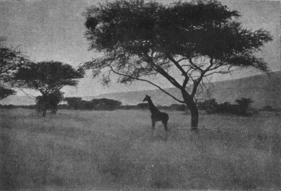 Während der kleinen Regenzeit, die dieses Jahr (1911) nur sehr kurz war, verblieben wir auf unserer immer mehr aufblühenden Tierzuchtfarm. Aber allzu lange sollte die Ruhe, die wir hier genossen, nicht dauern, da ich noch möglichst bald die Gelegenheit[S. 156] wahrnehmen wollte, meine Tierkarawane, deren Abtransport im Frühjahr erfolgen sollte, durch den Fang von jungen Giraffen und Oryxantilopen zu vervollständigen. Ferner ging jetzt die Brutzeit der Strauße zu Ende, und so hatte ich gleichzeitig die beste Aussicht, eine Anzahl junger Vögel für meine Straußenzucht einzufangen.