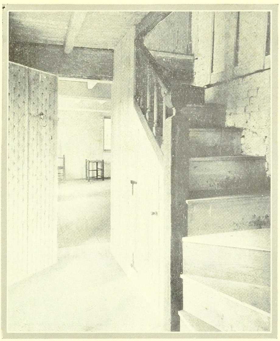 It is claimed by some that the floors were sanded. That certainly was true at a later period but there are strong elements of doubt as to the prevalence of this custom during the seventeenth century. Sand, however, was used freely with home-made soft soap, to scrub the floors which were always kept white and clean, and whenever an early house is restored or taken down sand is always found, sometimes in considerable quantity, where it has sifted down through the cracks between the floor boards. The downstairs rooms had double floors but the chamber floors were made of one thickness of boards with here and there a knothole and frequently with cracks between the boards through which the dust and dirt from above must have sifted down upon the heads of those seated at dinner or engaged in their daily tasks in the rooms below. Not only does the structural evidence show this to be true but a number of instances occur among the papers in Court files, where witnesses have deposed as to what they had seen and heard through the cracks in chamber floors. A grandson of Governor Endecott once fell a victim of two gossiping sixteen-year old girls who had spent some time on their knees peeping through the cracks in a chamber floor. Capt. Richard More, the last survivor of the company on the “Mayflower,” late in life kept a tavern in Salem. He was spied upon in this manner and eventually brought before the justices of the Quarterly Court to answer for his evasion of the law set forth and maintained at that time.