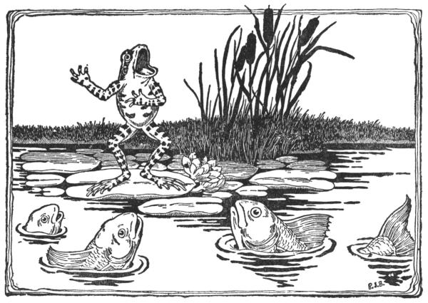 “Really,” he thought, “I have a very fine voice,” and the fishes putting their heads out of the water thought so too. But fishes have no voice at all, so perhaps that was why they thought the singing of the frog so wonderful. Then, too, he was their next-door neighbor, and the doings of next-door neighbors are sometimes thought more wonderful than the doings of persons at a distance—though at other times it may be just the other way about.