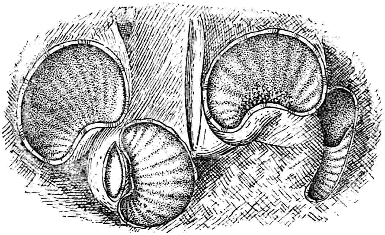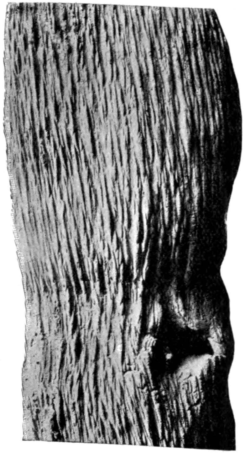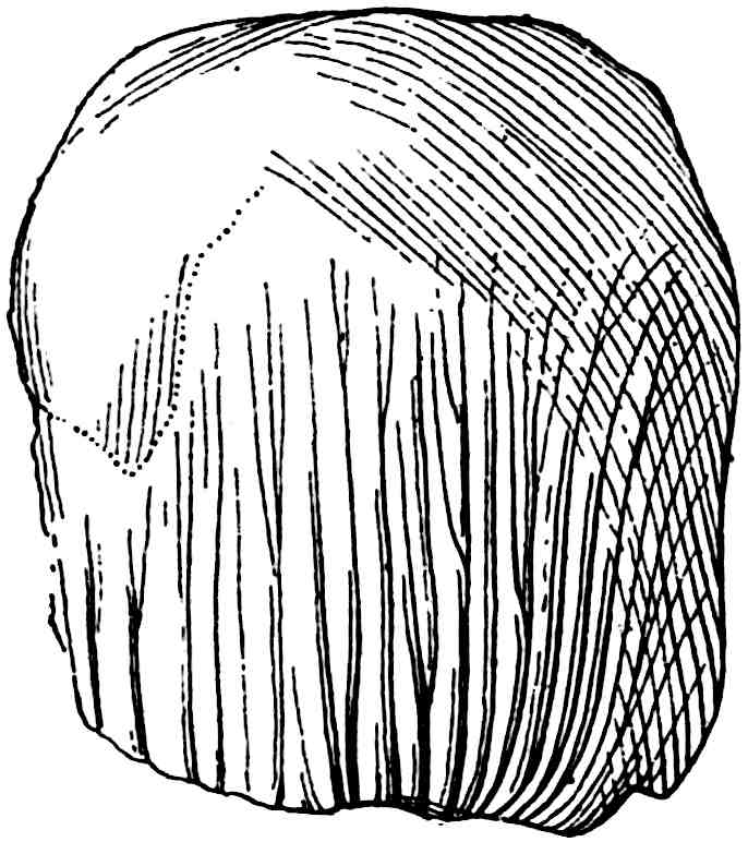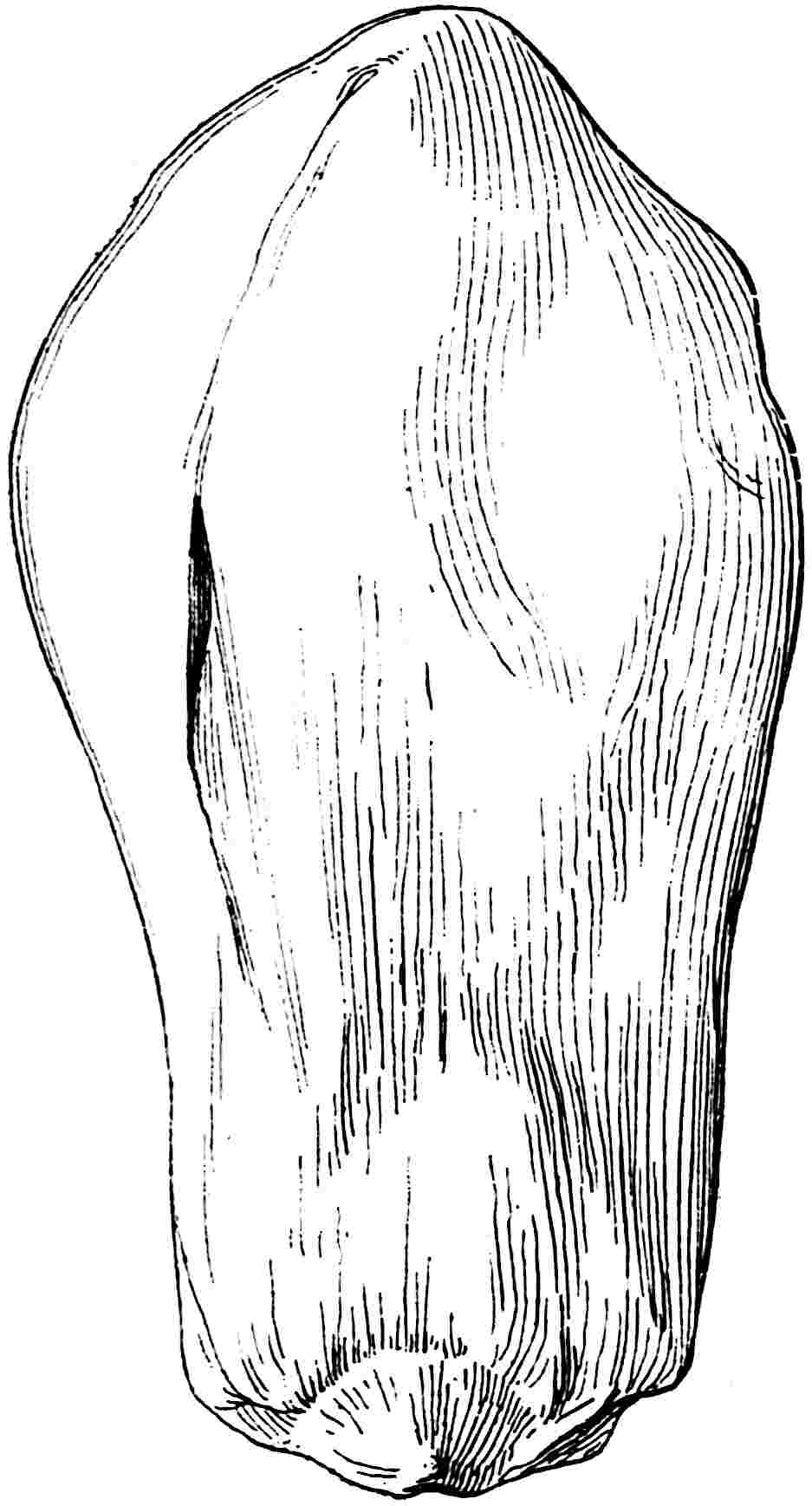 The employment of this generic name may serve a useful purpose if used for specimens, whether preserved as petrifactions or impressions, believed to be portions of Cycadean frond-axes, but which in the absence of pinnae cannot be assigned to one of the recognised genera of fronds. Saporta[1770] describes two species from Kimmeridgian beds in France, Cycadorachis abscissa and C. armata: the first may be the winged base of a Cycadean petiole, but it agrees equally well with the broad base of an Osmundaceous 591leaf and should not be referred to a genus implying affinity with a particular class. The other species, C. armata, is probably a piece of a spinous axis like that of the Wealden plant Sewardia latifolia (Sap.). A fragment figured by Fliche and Bleicher[1771] from the Jurassic of Nancy as C. tuberculata is another example of a fossil which cannot be referred with any certainty to the Cycads.