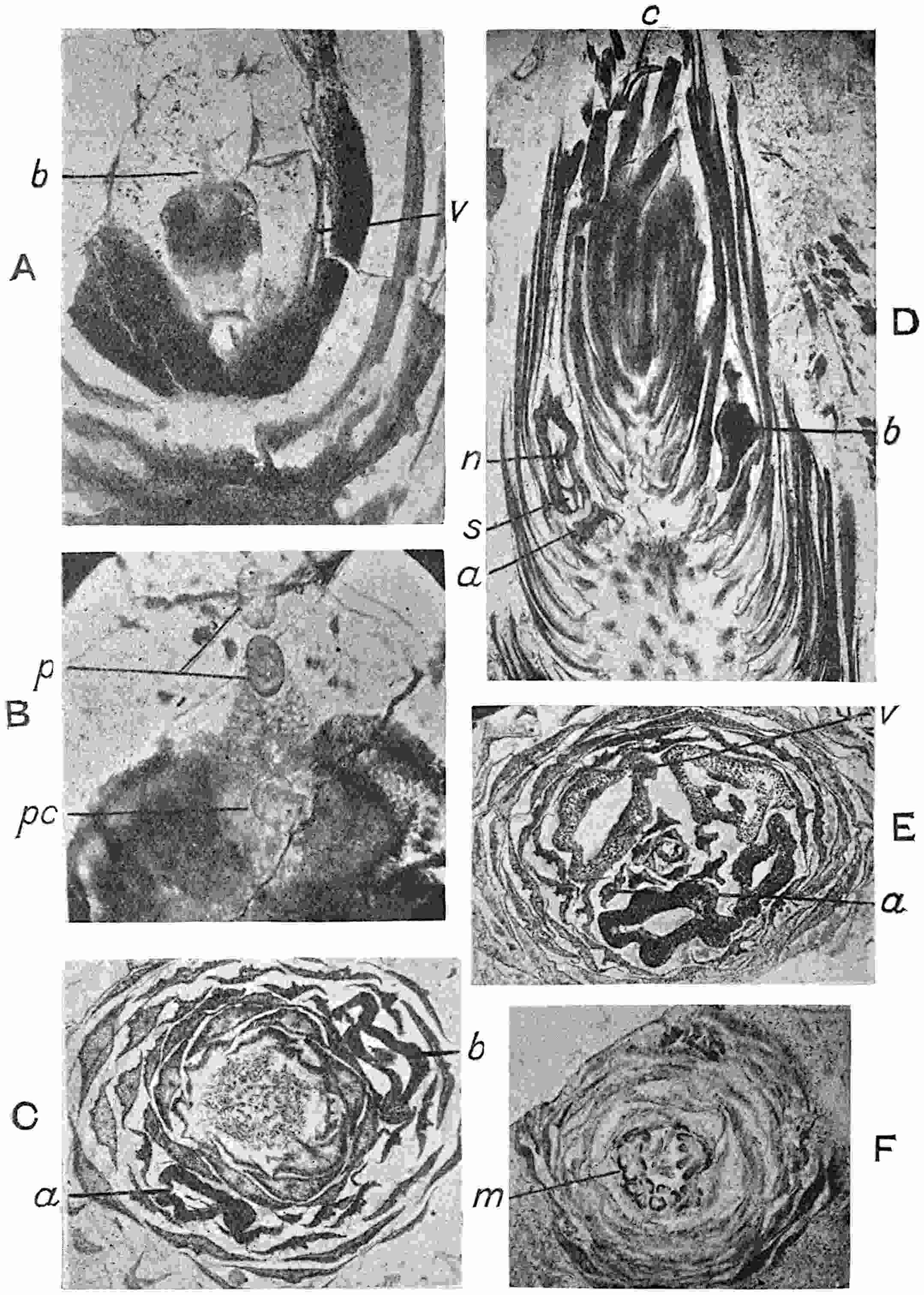 The death of Count Solms-Laubach has deprived Palaeobotany of one of its most learned and strongest supporters. In common with all students of fossil plants I owe much to the critical treatment of the subject in the Einleitung in die Paläophytologie. Prof. Jeffrey has very kindly given me several photographs and sections which have been of great service, and I am similarly indebted to Prof. Zalessky. To Prof. Nathorst my thanks are due for the great interest he has taken in my work and for his generosity in providing drawings and showing to me many of the treasures in the famous Stockholm Museum. Prof. Bertrand and Prof. Lignier freely supplied photographs and drawings of specimens in their possession, and I am particularly grateful to them for the willingness with which they always responded to my requests.
