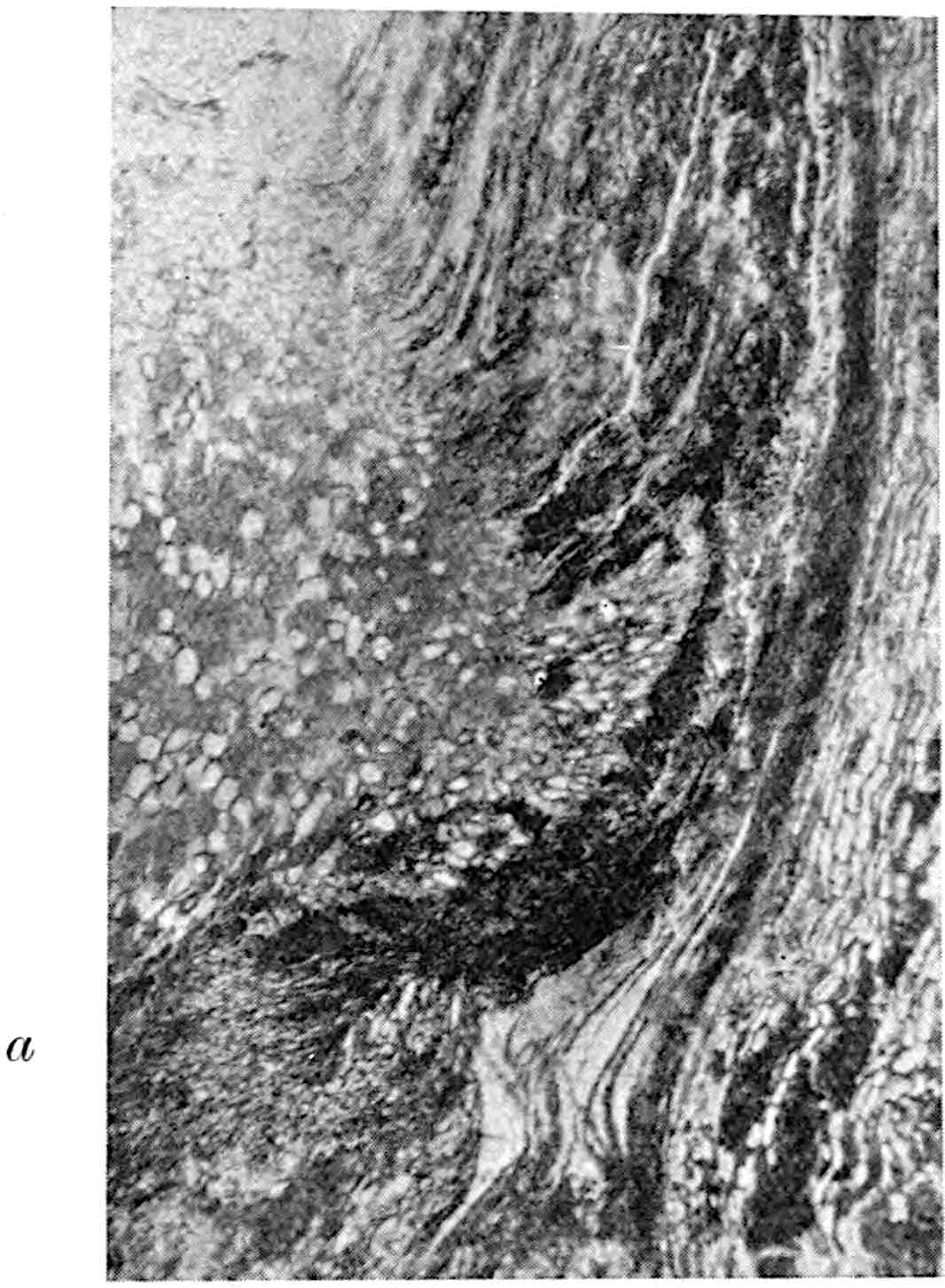 Some interesting xerophilous features have recently been described by Halle[1586] in the lamina of Pterophyllum (Anomozamites) marginatum, a Rhaetic species figured by Schenk and Nathorst from Franconia and Scania. The pinnae were thick and succulent. Stomata are confined to the lower surface and the edges of the upper face of the lamina form a rounded curve causing the thick upper cuticle to abut on the thinner stomatiferous lower cuticle, thus producing in impressions the appearance of thickened margins.