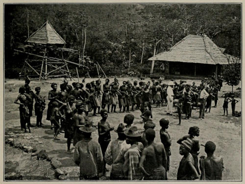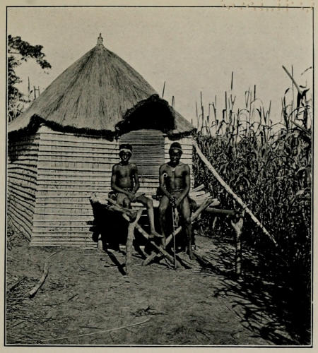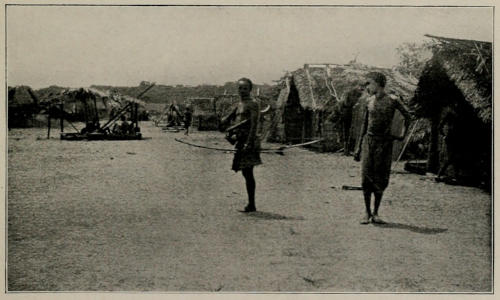 When we crossed the Kwilu and started off towards Alela our way lay for some miles in a southerly direction almost parallel to the river, and accordingly we marched for a considerable distance through the forest which borders the stream, but which is really only about ten miles in width opposite to Kikwit, and gives place to a very hilly grass country, plentifully studded with trees. We passed through several villages occupied by Bambala, in one or two of which we exhibited the “elephant,” always producing the greatest astonishment among the natives; but the territory of the Babunda begins at no great distance from the Kwilu, and after two very easy stages we arrived in their country. There we found villages very different from any that we had yet visited. Instead of building their huts in a group, the Babunda live in the midst of their plantations, and accordingly the villages cover a great many acres of ground, some even extending to a couple of miles in length. They are usually situated in a valley, and seen from a distance nestling at the foot of grassy slopes, which are here quite devoid of trees, they almost remind one of a village of the Sussex Downs. The huts themselves, dotted about with their fowl-houses and granaries in the millet fields, are square, and they have their doors so high above the ground that a little platform is built outside the entrance, by means of which the[263] occupants can climb into the hut, and upon which the people sit and smoke their pipes in the evenings. The Babunda have enormous plantations, so that food is easily and cheaply obtainable in the country. We were welcomed cordially in every village, crowds of people meeting us on the road and accompanying us to our camping ground, singing in low and quite musical voices, for, like the neighbouring Bambala, the Babunda sing very well indeed. On our way we passed through two villages, between which a state of war existed, and we spent a night in one of them. One might have expected that one would find excitement raging in these villages, and to find some evidence of recent fighting. As a matter of fact, we noticed very little out of the common taking place in either village; all the men carried bows, but that is usual with the Babunda, so that it need not indicate that any hostilities were contemplated. When we arrived at the second of the two villages the chief welcomed us and conducted us to a shed beneath which we could rest, and then asked us to excuse him from entertaining us, as he was extremely busy making arrangements for a war! The last thing that he appeared to be preparing for was a breach of the peace. He seemed to be going round collecting quantities of the salt, neatly wrapped up in banana leaves, which is used so largely as currency in this district, and handing them over to a woman. We discovered, upon questioning the natives, that a man of this place had been killed in quarrel by a native from the neighbouring village through which we had passed. As is usual in such cases, no immediate attempt at reprisals had been made, but the chief of the murdered man’s village had demanded the payment[264] of a heavy indemnity for the slaying of his subject, threatening, in case the damage should not be forthcoming, to declare war. The sum demanded had not been paid, and accordingly the chief in whose village we were staying was obliged himself to pay damages to the relatives of the murdered man, and had told his warriors to hold themselves in readiness to commence hostilities with the offending village. At the time of our arrival the dead man had not been buried, and a number of women were singing a funeral dirge around the hut in which the body was laid. During the evening and the night which followed we observed no posting of sentries or any other similar indication that a state of war existed, and we subsequently learned that the affair had been settled by the ultimate payment of the indemnity by the village of the murderer. Little inter-village disputes such as these are of frequent occurrence, but they rarely lead to serious fighting, and any casual traveller passing through the belligerent villages might usually fail to notice that anything extraordinary was going on. White men or their servants are, as a rule, allowed to travel through districts where a state of war exists without any molestation whatever, for the natives are quite content to keep their differences to themselves, and strictly respect the neutrality of the white man. Some days after we had passed through this district, a new European agent of the Kasai Company followed in our footsteps to commence his work at Alela. This young man had not been long enough in Africa to learn anything of a native language, and when his boy attempted to explain to him that there was trouble between the two villages which I have mentioned, he failed to understand[265] what he was told. The boy thereupon resorted to signs, and, taking a bow, he tried to explain to the white man that fighting was likely to take place; the young man, however, imagined from his gesticulations that some attack might be contemplated upon himself and his caravan. He therefore passed an anxious and, I believe, a sleepless night, and fully believed when we met him some days later that he had had a very fortunate escape from a dangerous situation.