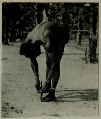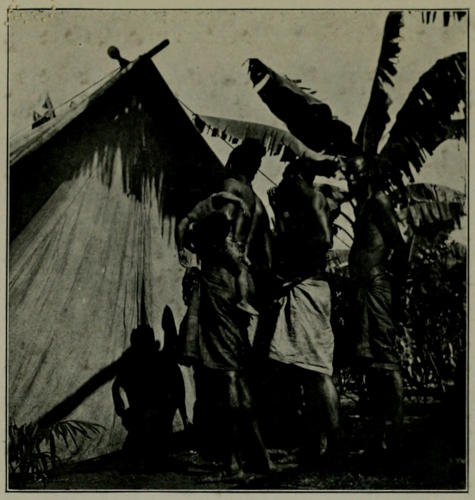 He accordingly tied one of the dolls in a prominent position upon the ridge pole of his tent, and we soon observed that its presence had been noticed by the Bakongo. As a rule, when a native is really impressed by anything that he thinks may be of a supernatural character, he disguises his feelings, and does not exhibit the great curiosity with[321] which he usually views any strange thing the white man may show him, and we saw that the Bakongo were extremely shy of our little “medicine,” as we called our doll, for no crowd collected round it, but nearly every one in the place must have had a look at it from a distance, each one soon passing on silently and with a puzzled expression on his face.