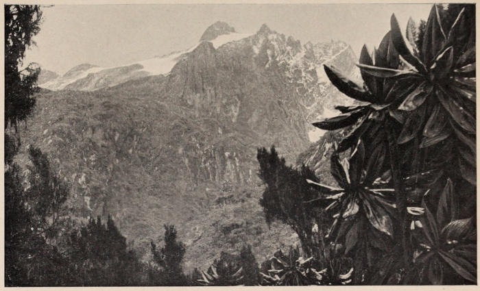 In 1903, Rev. A. L. Kitching, Mr. Fisher, and myself started off for a trip to that unfrequented region. Our baggage looked more suitable for a Polar expedition than a climb on the Equator. Every conceivable fusty and moth eaten winter garment was hauled out and packed into a waterproof sack; eider-down quilts, India rubber foot warmers, and bales of blankets for ourselves and boys formed part of the caravan. The reports of our mountaineering predecessors led us to anticipate an arduous and colossal task, but our ambition was not to attempt more than those who had a wider experience in mountain climbing than ourselves, but to stand on that untraversed land of ice where scarcely mortal foot had trod, and to inhale its cool life-giving air so that we might be refreshed for a return to work in the hot tiring lowlands.