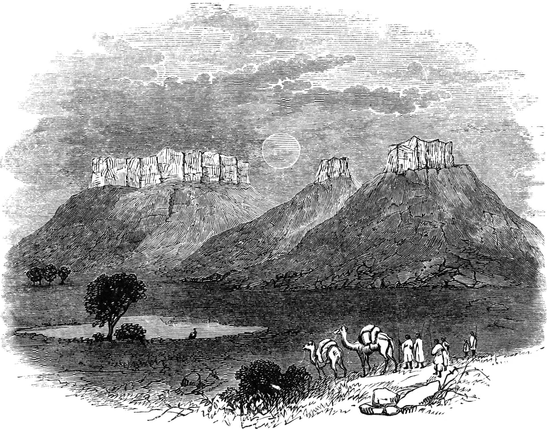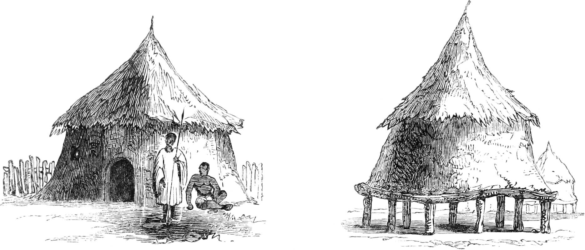 | Uncertain Distance from Timbúktu. — Departure from Dóre. — The Ponds or “Wéndu.” — Providentially detained in Wúlu. — Numerous Sheets of Water. — Difficult Watercourse. — Serious Encounter. — Crossing a Swamp. — Áribínda. — Fíliyo, a Songhay Village. — Independent Character of Inhabitants. — Tinge. — Ground Plan of Dwelling. — Character of Inhabitants. — Habits of Industry. — Heavy Rains. — Caillié’s Kissour. — Fúlbe Cattle Breeders. — Hómbori. — The Black Worm. — Kúbo. — District Tondi. — Craftiness of El Waláti. — March of Red Worms. — Isolated Mounts. — Native Dwellings. — Dúna. — Governor of Dalla. — Mundóro. — Curious Thatchwork. — Hómbori Range. — Variety of Huts of Ísayé. — Approach Hómbori Mountains. — Castellated Mounts. — Bóne. | |