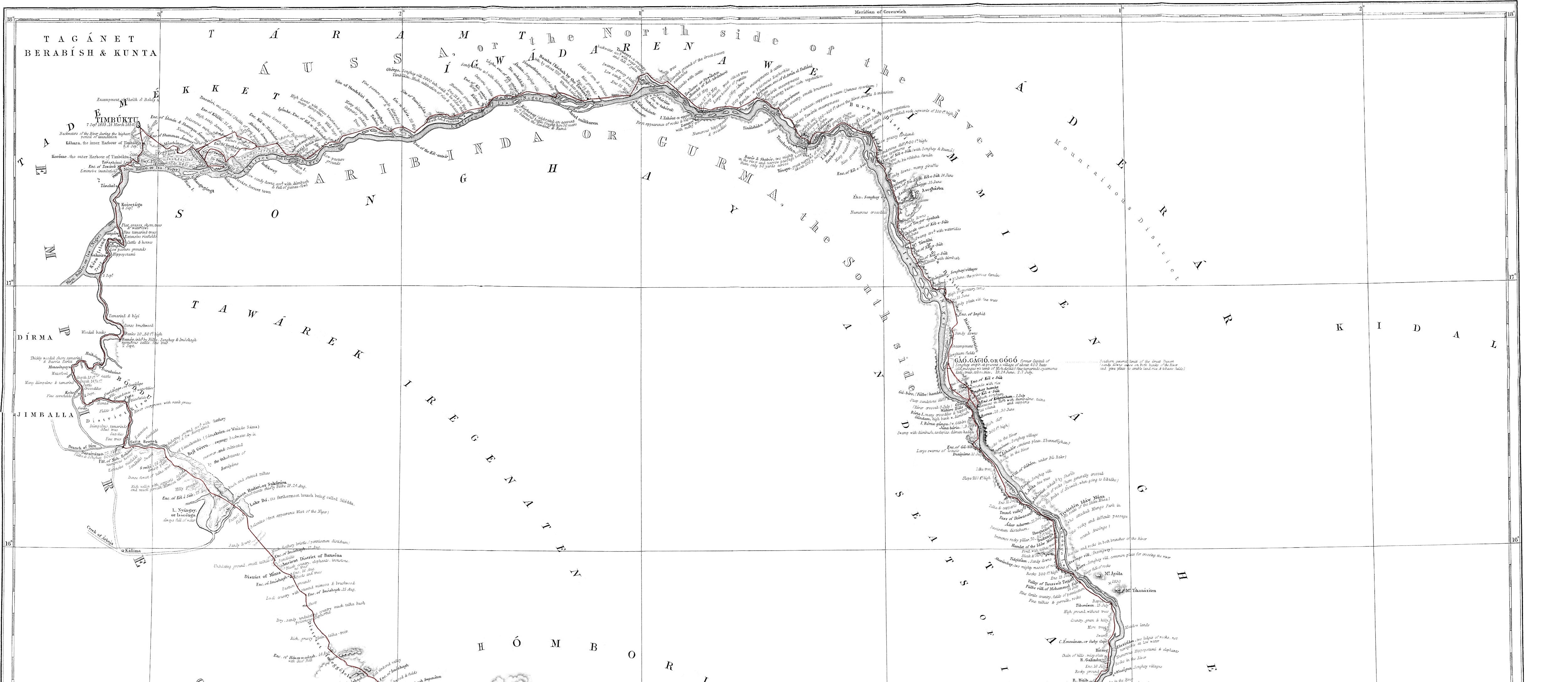 | Tásakal. — Koróme. — Large Number of Boats. — Branch of Koróme. — Arrival at Kábara. — Description of Kábara. — The Inspector of the Harbour. — Unwelcome Visitors. — Interview with Sídi Álawáte. — Approach to Timbúktu. — Momentous Meeting. — Entrance into Timbúktu. | |
