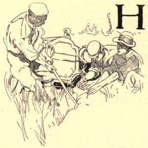 Soon white-trousered, bare-footed, dark, wiry fellows surrounded the strange vehicle of los Americanos. All the wealth of words in the Spanish tongue seemed insufficient to express their wonderment. Like a small army, guided and bullied by their natural leader, they carried stones, swung on the long poles, yelled and fussed until, one after another, the wheels were raised and set on an uncertain floor of rough rocks. Waldon jumped to his seat behind the wheel. The motor spit and steadied to the old familiar purr. The native audience stood tense and spellbound. The clutch engaged. With a mighty wrench, the big car tore itself free, scattering behind a wild volley of stones and mud, and jumped to the solid ground ahead.