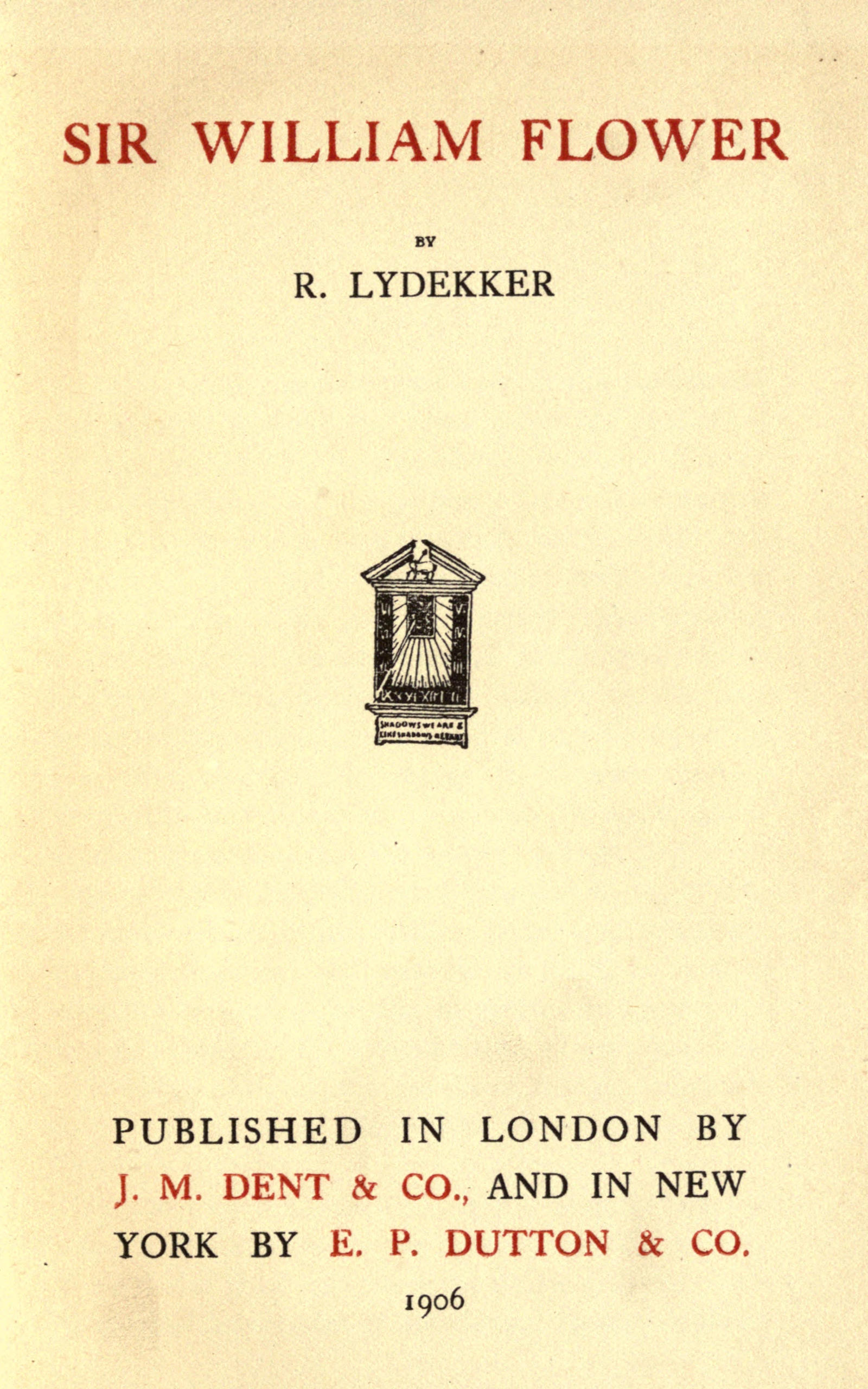 Although the complete manuscript of this volume was placed in the hands of the editor before the publication of the late Mr. C. J. Cornish’s Life of Sir William Flower (in 1904), yet the present writer was aware that such a work was in progress, and that it would deal with the social and personal rather than with the scientific side of Sir William’s career. Consequently it was decided at an early period of the work to concentrate attention in the present volume on the latter aspect of the subject; as indeed is only fitting in the case of a biography belonging to a series specially devoted to men of science. An incidental advantage of this arrangement is that the writer has been able in the main to confine himself to the discussion of topics with which he is more or less familiar, rather than to attempt to chronicle events and episodes to which he must of necessity be a stranger, and to attempt an appreciation of a fine character for which he is in no wise qualified.