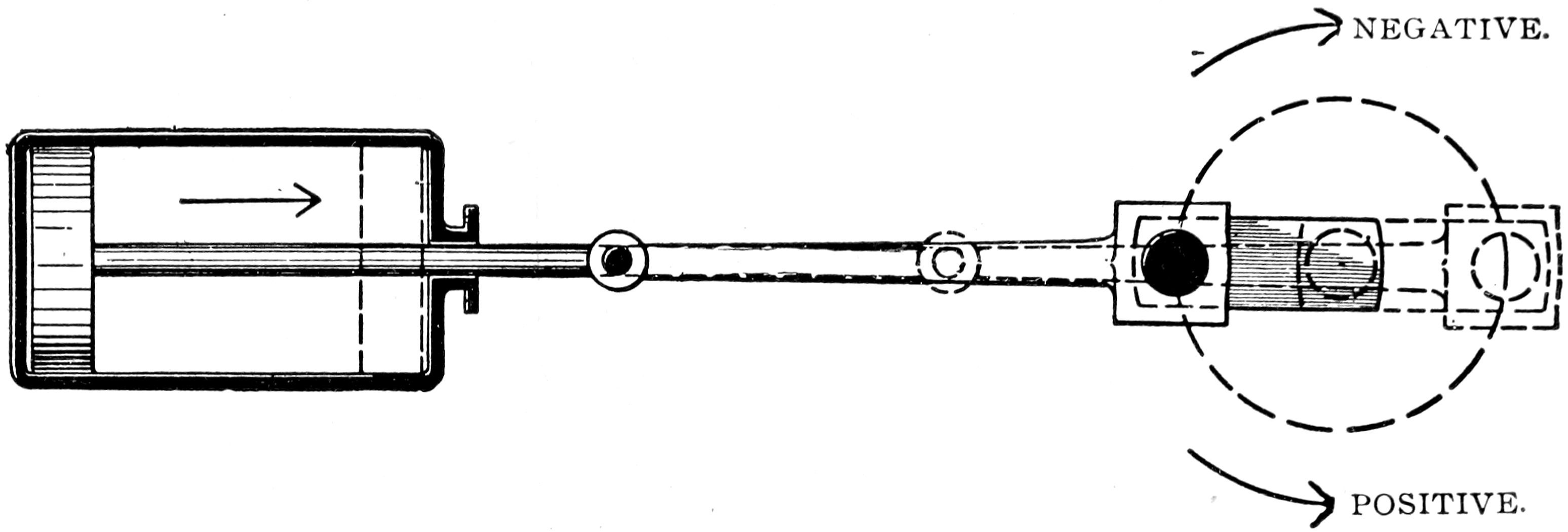 Secondly—To move away from that new position, after the engine has started astern, in the same direction as that in which it was moving when the engine was running ahead. And seeing that the valve gear derives motion from the crank-shaft directly or indirectly, we cannot give the valve motion in this same direction from an engine now moving reversely, unless we also reverse the gear. And thus we may conclude that a reversing gear is needed simply for the purpose of regulating the direction of the first motion of the valve after stopping (i.e., for “changing the step”), for after it next reaches the end of its travel its motion will be in all respects just as it was when the engine ran ahead,—so that, if we had a single-cylinder engine and never stopped 81it except on the dead centres, we could drive its valve by a separate valve-engine always running one way, and our main engine would, if pushed off by hand, run equally well either ahead or astern, whilst served by a valve having lap, lead, and travel as is customary. It is hoped that this little speculation may not appear unprofitable, for it has a bearing on the action of the reversing slides in radial valve gears such as those of Hackworth, Walschaert, and Joy.