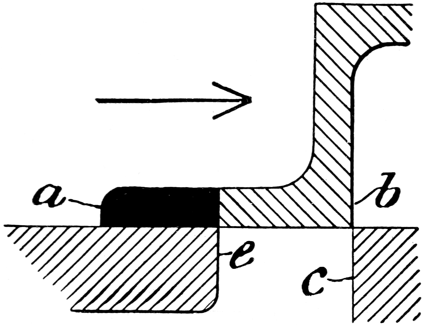 We should expect cut-off to take place 36earlier than with the old valve, for the eccentric is advanced, and the edge a (fig. 15) would arrive at e a little earlier than would the edge d of the old valve, even without advance of the new eccentric.