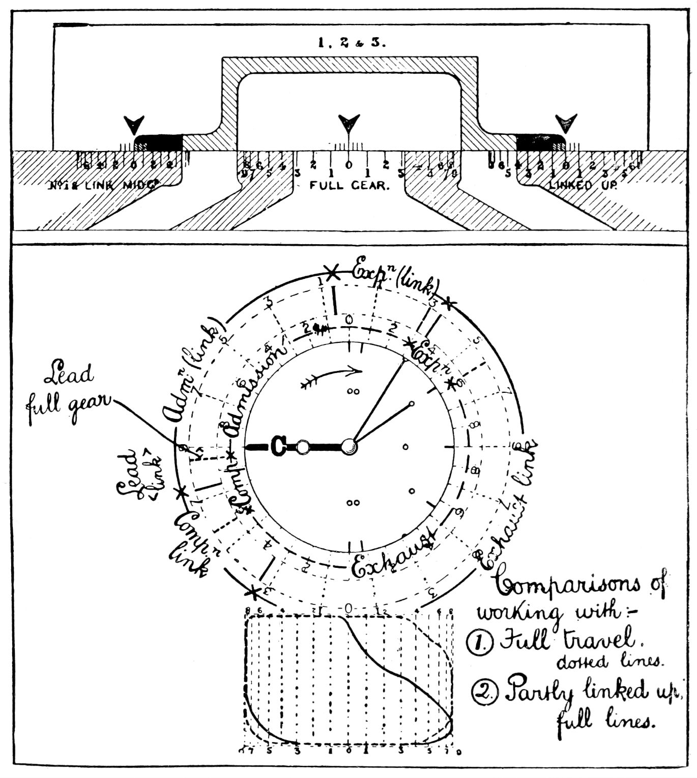 The mark 3 is for a forward eccentric for a valve with lap and lead run in “full gear.”[6]