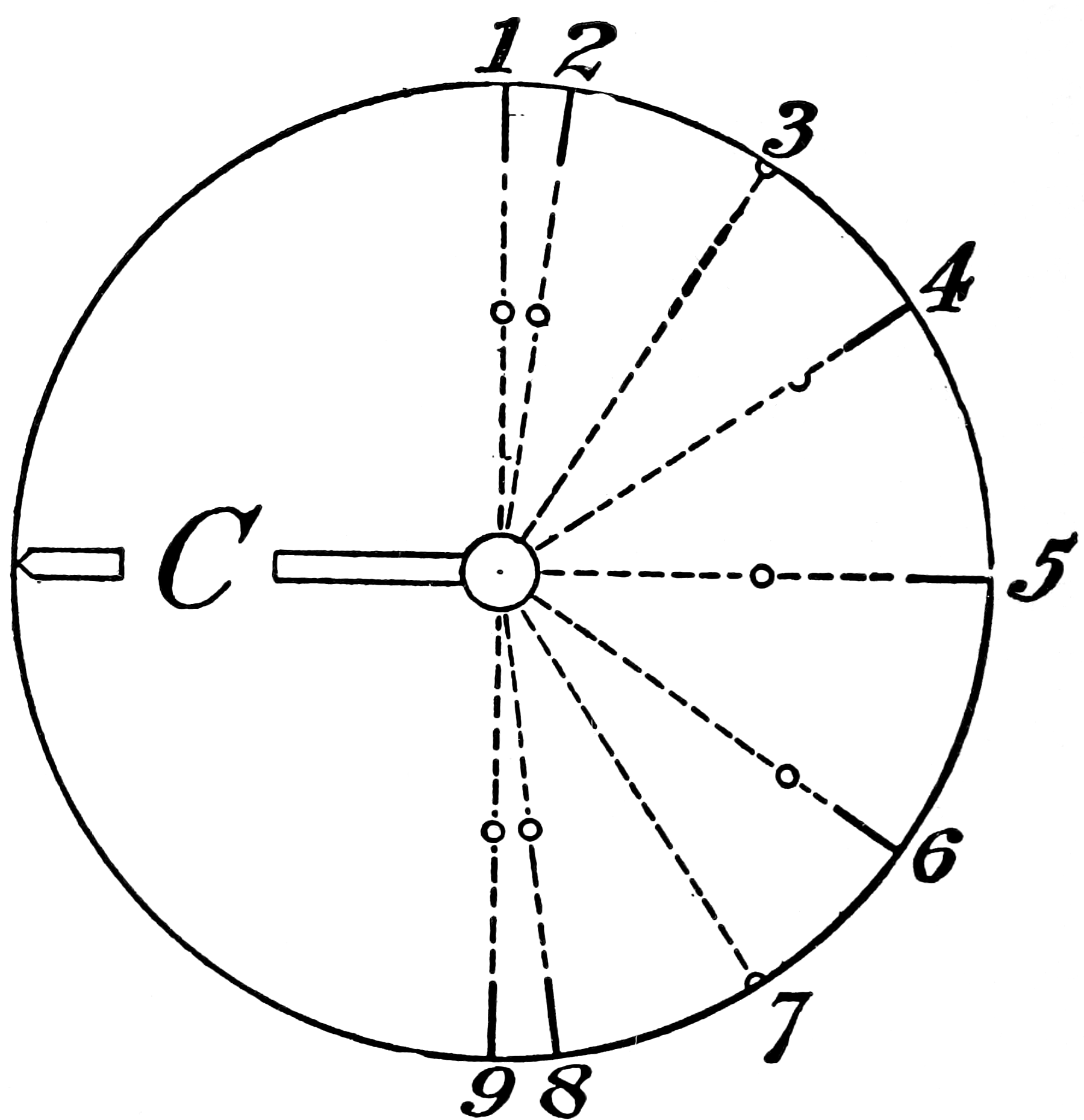 The arm marked C is the crank-arm, and serves as an index finger in the recording and reading of results.