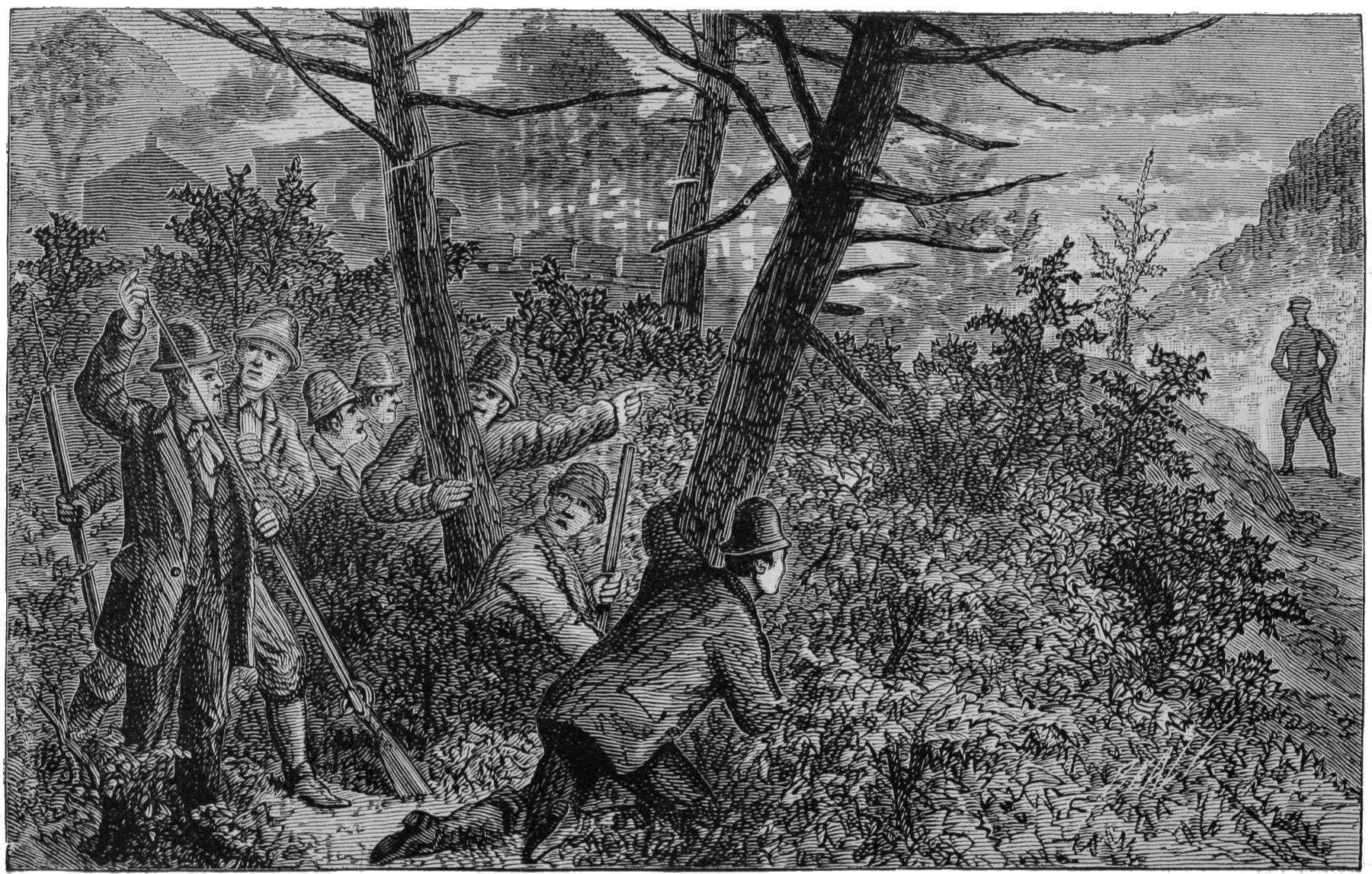It was the ninth of February, 1877, that the trial at Bloomsburg approached a crisis. Sitting in the prisoner’s 546dock, Pat Hester smiled when he saw Dan Kelly, alias Manus Kull, alias “Kelly the Bum,” in the witness-box. But his humor changed to dire dismay as he discovered that there were still other witnesses, who fully corroborated what Kelly made oath to. Dan Kelly’s story of the Rae assassination was about as follows: