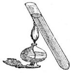 [41] In the ordinary lucifer-match (an invention since Davy’s time) we have a striking illustration of the different temperatures required for various substances to enter into combustion. The phosphorus with which these lucifers are tipped becomes inflamed at a very low heat (60°), so that mere friction is sufficient to ignite it. This substance, in burning, produces heat sufficient to kindle the sulphur next to it; for this, as we have seen, enters into combustion at about 500°; and the sulphur again, in burning, raises the temperature sufficient to ignite the wood, which requires a heat of at least 1000° before it can be made to burn. Had the match been tipped with phosphorus alone, the phosphorus acid produced by the combustion would have incrusted the wood and prevented it inflaming. Before the use of phosphorus matches had become general, others were introduced, the tips of which were coated with a mixture of chlorate of potash and sulphur, and these had to be drawn forcibly through a piece of folded sand-paper, for this mixture requires a much higher heat in order to inflame it. Previous to the introduction of these, again, the common brimstone match was in general use. This, as is well known, was kindled by means of a spark in tinder—the tinder consisting of charred rag, and the spark, therefore, being merely a particle of charcoal at a red heat, while the ignition of the tinder itself was originally produced by the percussion of a piece of flint and steel, which evolved so much heat that small splinters of the metal were fused by it and fell upon the tinder in a red-hot state.