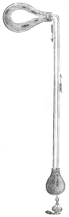 [36] Dr. Paris, in his “Life of Davy” (p. 37), relates the following anecdote concerning the construction of this apparatus: “A French vessel having been wrecked off the Land’s End, the surgeon escaped, and found his way to Penzance. Accident brought him acquainted with Humphry Davy, who showed him many civilities, and in return received, as a present from the surgeon, a case of instruments which had been saved from the ship. The contents were eagerly turned out and examined by the young chemist; not, however, with any professional view as to their utility, but in order to ascertain how far they might be convertible to experimental purposes. The old-fashioned and clumsy glyster apparatus was viewed with exultation, and seized in triumph. What reverses may not be suddenly effected by a simple accident! So says the moralist. Reader, behold an illustration: in the brief space of an hour did this long-neglected and unobtrusive machine, emerging from its obscurity and insignificance, figure away in all the pomp of a complicated piece of pneumatic apparatus. Nor did its fortunes end here; it was destined for greater things; and we shall hereafter learn that it actually performed the duties of an air-pump in an original experiment on the nature and sources of heat.” It is but right to add, that Dr. Davy doubts the truth of the above story.